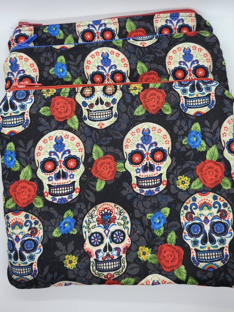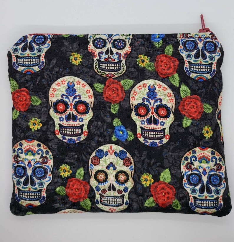 Handmade Sugar Skull Makeup Bag Blue Red Roses Cosmetic Bags Cosmetic Toiletry Storage Cartamz Com